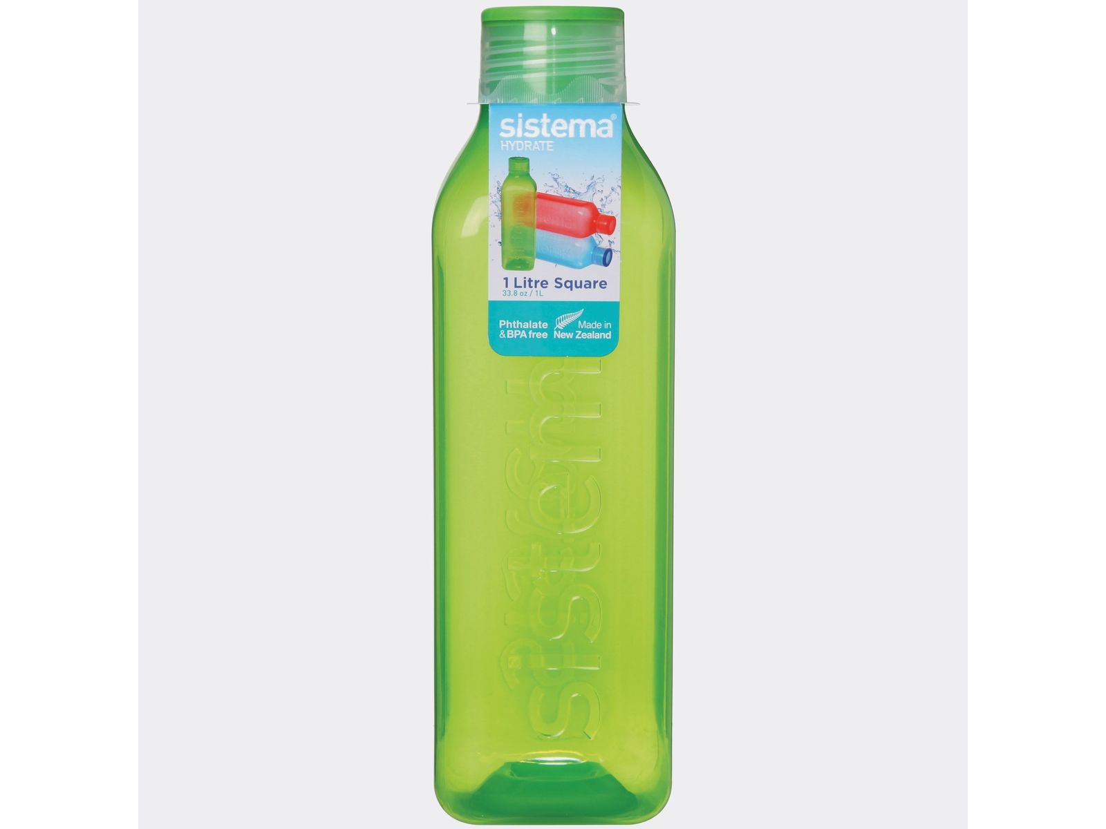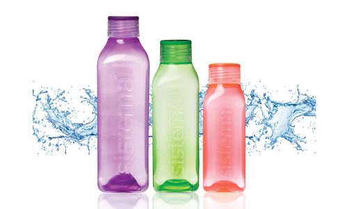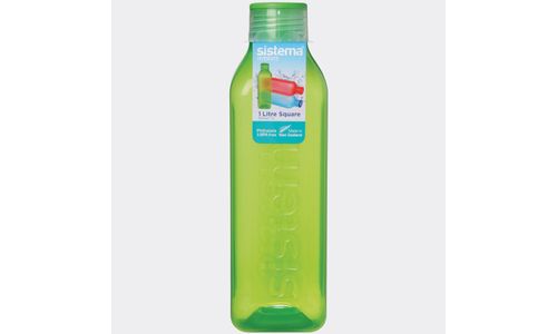 De retro geïnspireerde Sistema® Hydrate vierkante fles heeft een gemakkelijke greep op de holle zijden, plus afsluitbaar schroefdeksel om lekken te voorkomen.