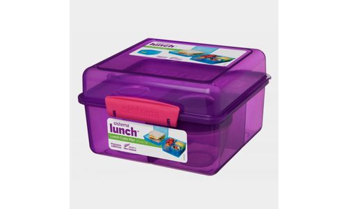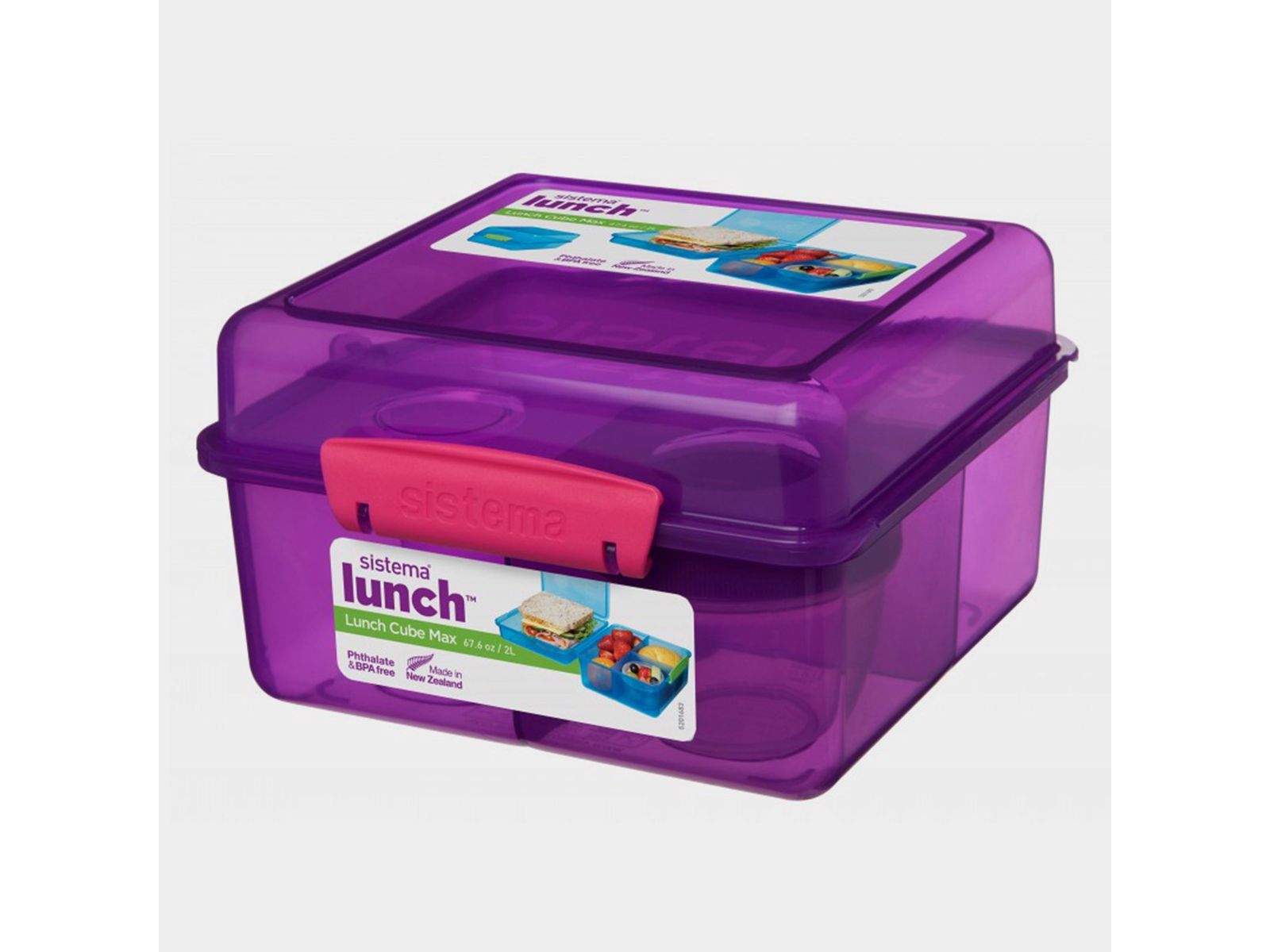 Vrolijk uw lunchtijd op met de kleurrijke Sistema® Lunch Cube Max. Met een eenvoudige vergrendelingsclip, twee lagen met meerdere compartimenten en een Yoghurtpot van 150 ml is het eenvoudig om uw voedsel vers en gescheiden te bewaren tot je klaar bent om te eten. Het grote basiscompartiment is perfect voor het opbergen van uw broodje, terwijl de bovenste compartimenten zeer geschikt zijn voor snacks.