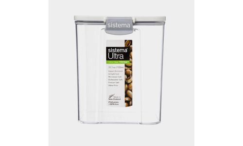 De Tritan Ultra vierkante voorraaddoos van Sistema kan perfect worden opgeborgen in de keukenladen, voorraadkast en koelkast.