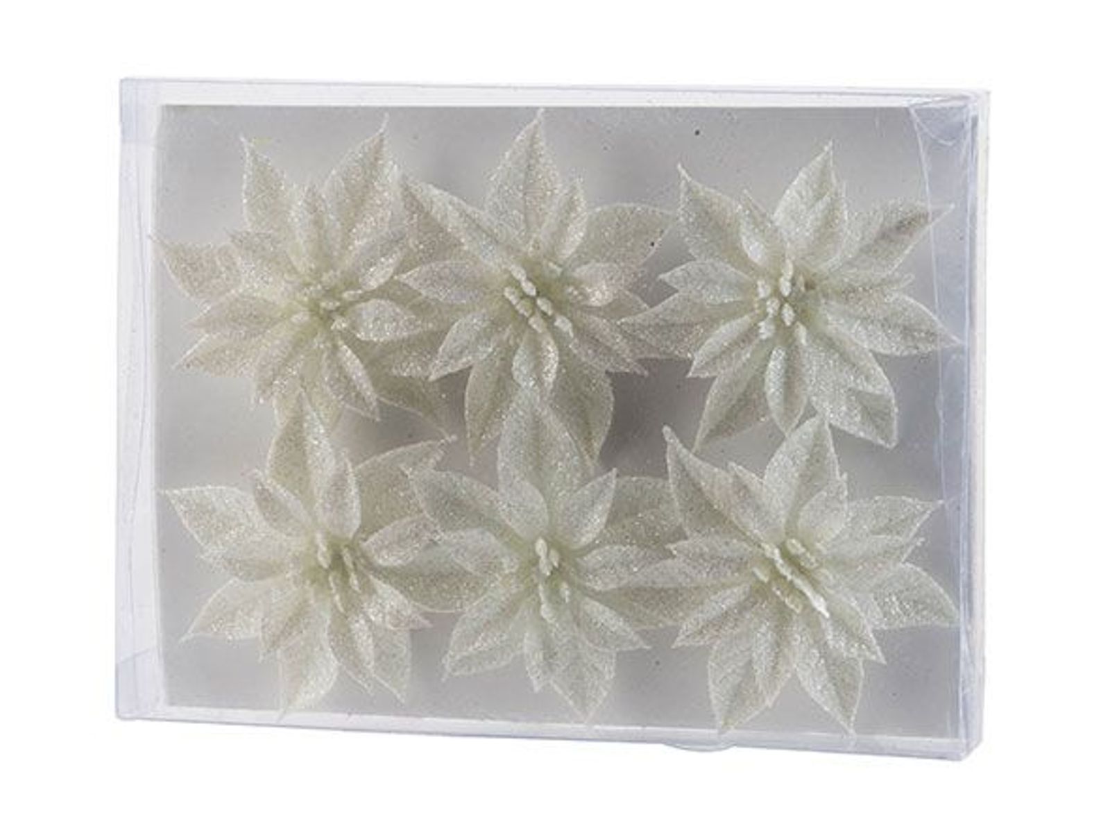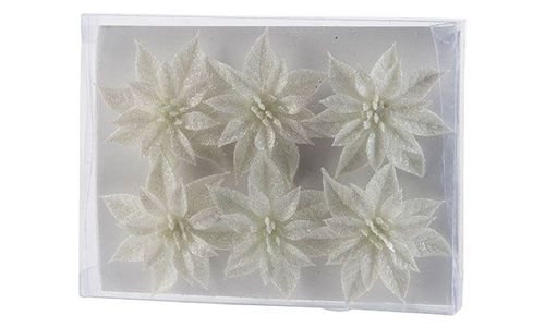 Kerstroos Set6 Glitter Wit D8cm K Unststof