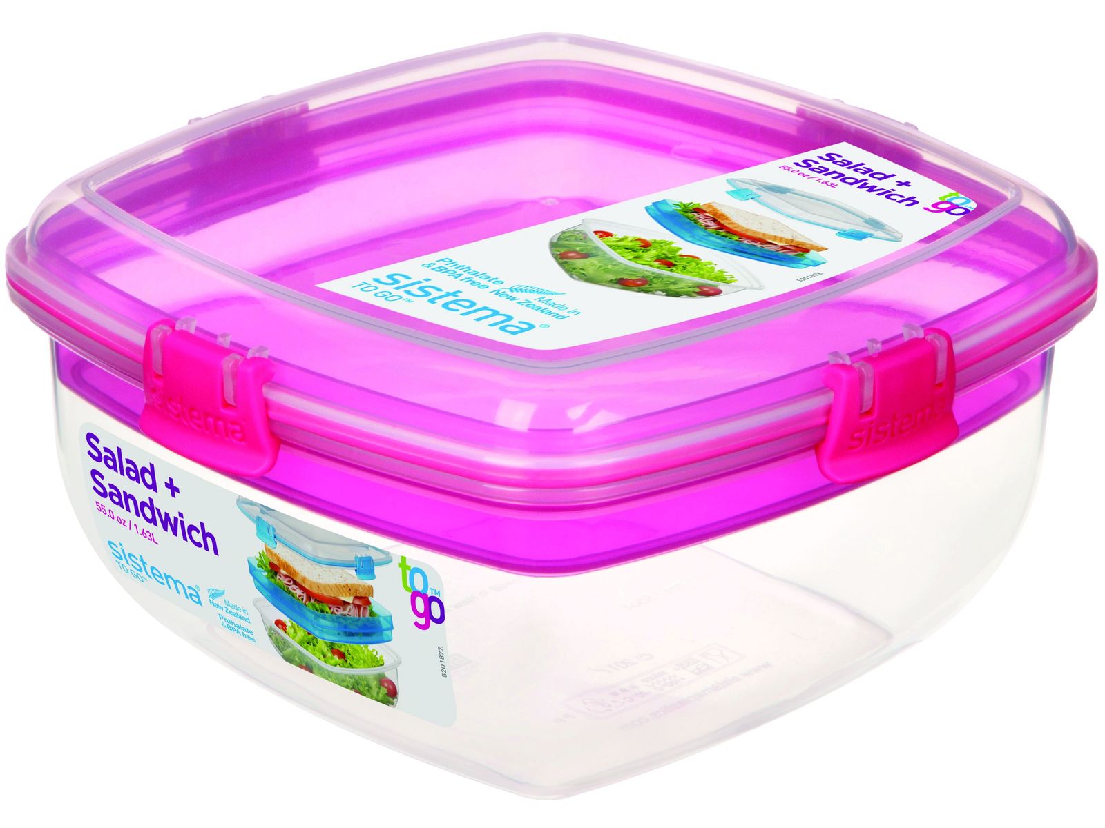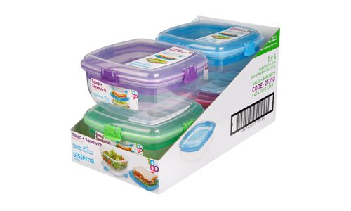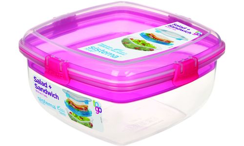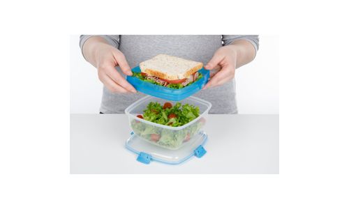 De Sistema® Salade en Sandwich is voorzien van een verdeelbakje om de ingrediënten gescheiden te houden. Met de gemakkelijk te vergrendelen clips en de flexibele afdichting blijft uw voedsel langer vers.