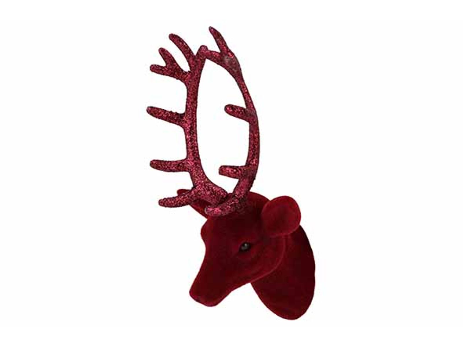 Hertenkop Hanger Flocked Bordeaux 10x16x H20cm Kunststof