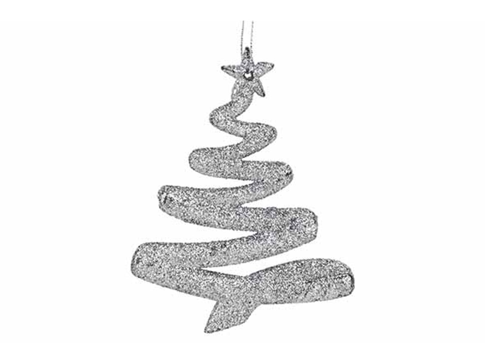 Hanger Kerstboom Glitter Zilver 9,5xh12c M Kunststof