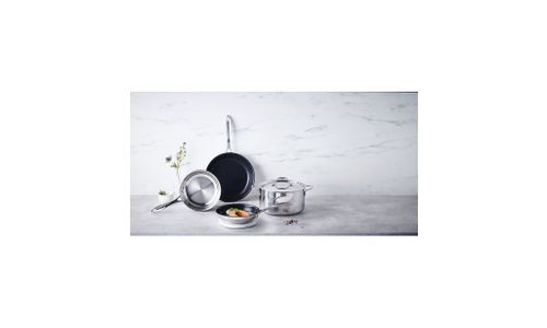- 3-lagige sandwichbodem elimineert hot spots en zorgt voor een gelijkmatige warmteverdeling.